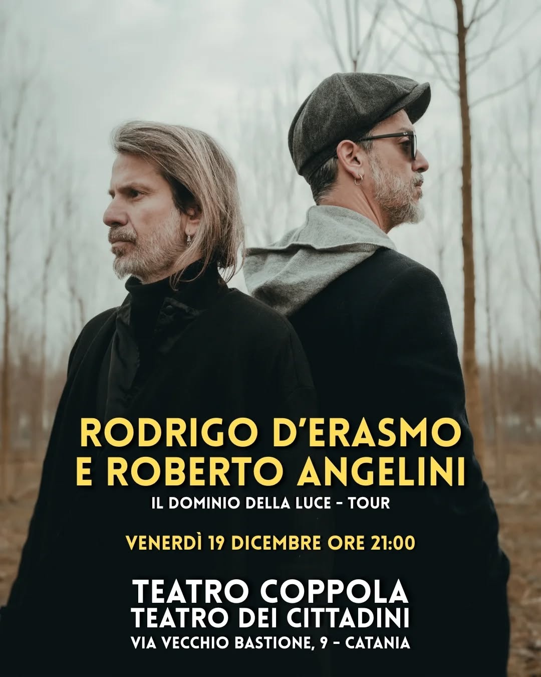 Rodrigo DβErasmo, violinista, compositore, arrangiatore e polistrumentista dalle numerose collaborazioni (Afterhours, Damon Albarn, Mark Lanegan) e il cantautore e chitarrista Roberto Angelini presentano i loro ultimo progetto intitolato Il Dominio Della Luce.
