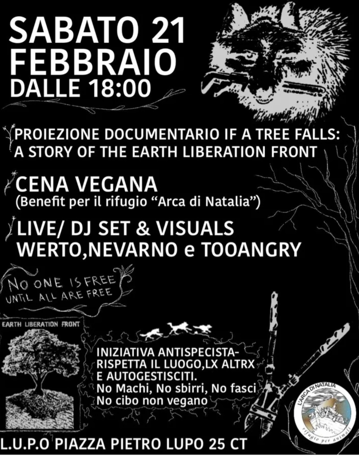 🌱Iniziativa antispecista. Rispetta il luogo, lx altrx e autogestisciti. No machi, no sbirri, no fasci, no cibo non vegano.