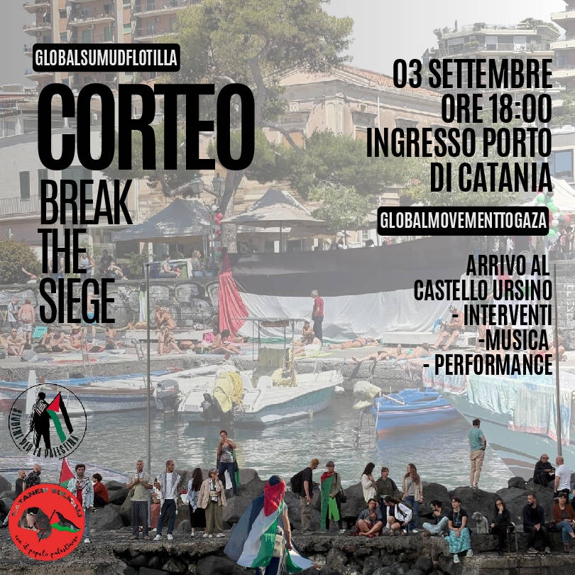 Corteo a sostegno della ๐๐ฅ๐จ๐๐๐ฅ ๐๐ฎ๐ฆ๐ฎ๐ ๐ ๐ฅ๐จ๐ญ๐ข๐ฅ๐ฅ๐ con partenza dall'ingresso del porto di Catania e arrivo in piazza Castello Ursino. Al termine del corteo: interventi, musica, performances.