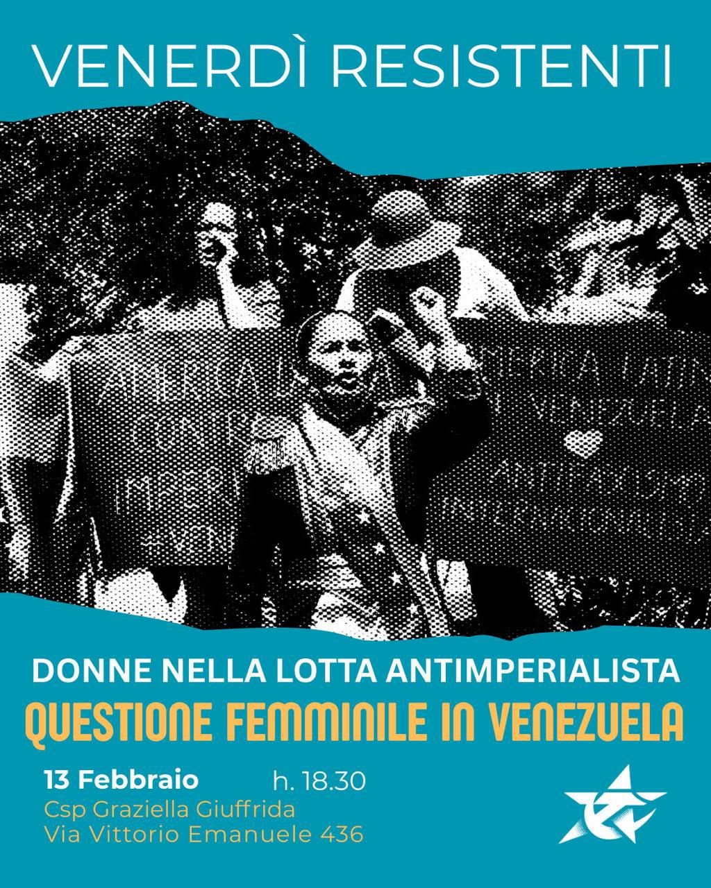 Vi aspettiamo per il secondo appuntamento dei nostri incontri mensili dedicati alle donne che hanno lottato e lottano contro l’imperialismo. Questo mese parliamo del ruolo delle donne nella lotta antimperialista e nella lotta di classe in Venezuela, dalla rivoluzione Bolivariana ad oggi.